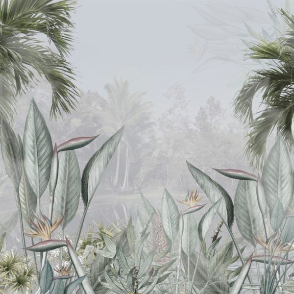 - Numri i produktit: 12088934537 Kjo letër-muri me foto paraqet një pyll ekzotik të mbështjellë nga një mjegull magjike dhe misterioze. Gjethet e bananes zënë vend qendror, së bashku me pemët si palma. Dizajni plotësohet nga shkurre shumë më të vogla. Letra-muri paraqet një skemë ngjyrash të zbehta dhe të zbehta. Dominojnë nuanca të ndryshme të gri dhe jeshile të zbehtë.…