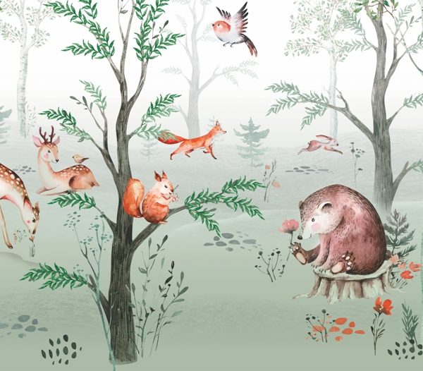 - Numri i produktit: 1463550124 Kjo letër-muri me foto jashtëzakonisht simpatike është perfekte për dhomën e një fëmije. E përshtatshme për fëmijë parashkollorë, është perfekte për të dekoruar një dhomë për një fëmijë më të vogël në moshë shkollore. Ajo përshkruan kafshë pylli të rrethuara nga natyra. Në plan të parë është një arush pelushi që buzëqesh, duke përshëndetur të gjithë…