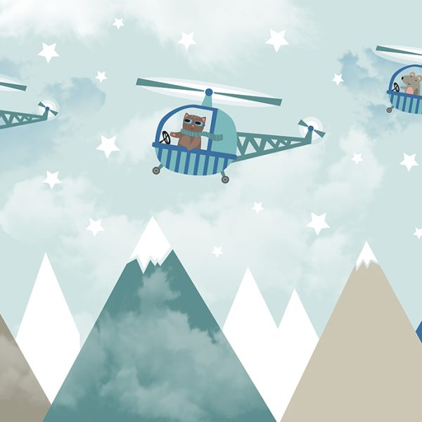 - Numri i produktit: 12083551481 Ky mural mural jashtëzakonisht simpatik, i projektuar duke pasur parasysh fëmijët, magjeps me motivin e tij malor, të kombinuar me tullumbace lundruese me forma të ndryshme. Retë e bardha i shtojnë një prekje ëndërrimtare muralit. Ngjyra dominuese janë nuanca të ndryshme të blusë. Këto kombinohen me kafe të zbehtë dhe të bardha për të krijuar një…