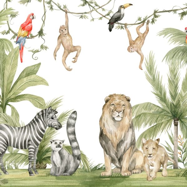 - Numri i produktit: 1479765495 Kjo letër-muri me foto është perfekte për dhomën e një fëmije. Ajo përshkruan kafshë të egra të rrethuara nga bimësi tropikale. Ajo paraqet një zebër, një luan dhe majmunë, ndër të tjera. Letra e murit është e gjallë, me shumë ngjyra të dukshme, por jo shumë intensive. Ngjyrat janë zbutur në mënyrë të përshtatshme, duke e…