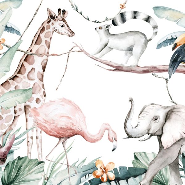 - Numri i produktit: 12120539298 Kjo letër-muri me foto tepër e gjallë dhe me temë pozitive është perfekte për dhomën e çdo fëmije. Perfekte si për vajzat ashtu edhe për djemtë, ajo përshkruan kafshë ekzotike në habitatin e tyre natyror - xhunglën. Do të shihni një gjirafë, një zebër, një majmun të gëzuar dhe flamingo të gëzuar. Ajo që e bën…