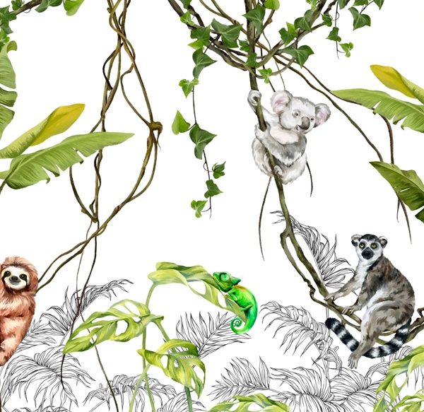 - Foto murale, GJETHE TROPIKALE, KAFSHË, NATYRË, Për dhoma, PËR DHOMA GJUMI, PËR FËMIJË, PËR SALLONE, PËR ZYRA