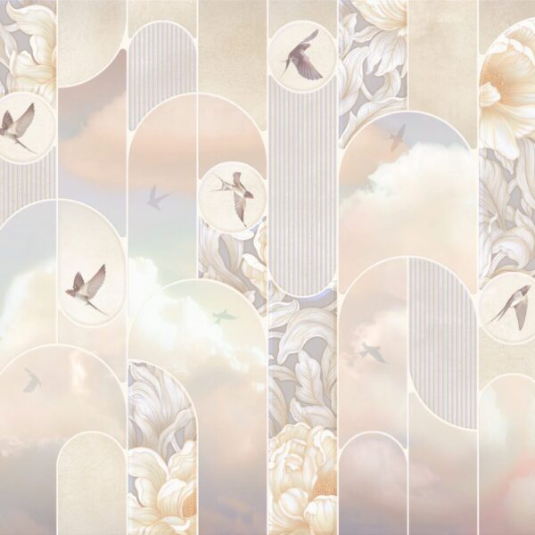 Një element i tillë mund t’i shtojë një prekje freskie çdo dekori, por së pari, duhet të përshtatet me temën që dëshironi të përfshini. Për hapësira moderne, minimaliste, sfondet me re të thjeshta, të konturuara në mënyrë delikate ose një qiell të kaltër të plotë janë ideale, duke sjellë një ndjesi qetësie dhe duke theksuar hapësirën e hapur. Interieret e pasura në stilin boho mund të përfitojnë nga një motiv perëndimi dielli me ngjyra intensive – do t’i shtojë dhomës një ndjesi të ngrohtë dhe komode.
