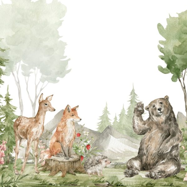 - Numri i produktit: 1463550124 Kjo letër-muri me foto jashtëzakonisht simpatike është perfekte për dhomën e një fëmije. E përshtatshme për fëmijë parashkollorë, është perfekte për të dekoruar një dhomë për një fëmijë më të vogël në moshë shkollore. Ajo përshkruan kafshë pylli të rrethuara nga natyra. Në plan të parë është një arush pelushi që buzëqesh, duke përshëndetur të gjithë…