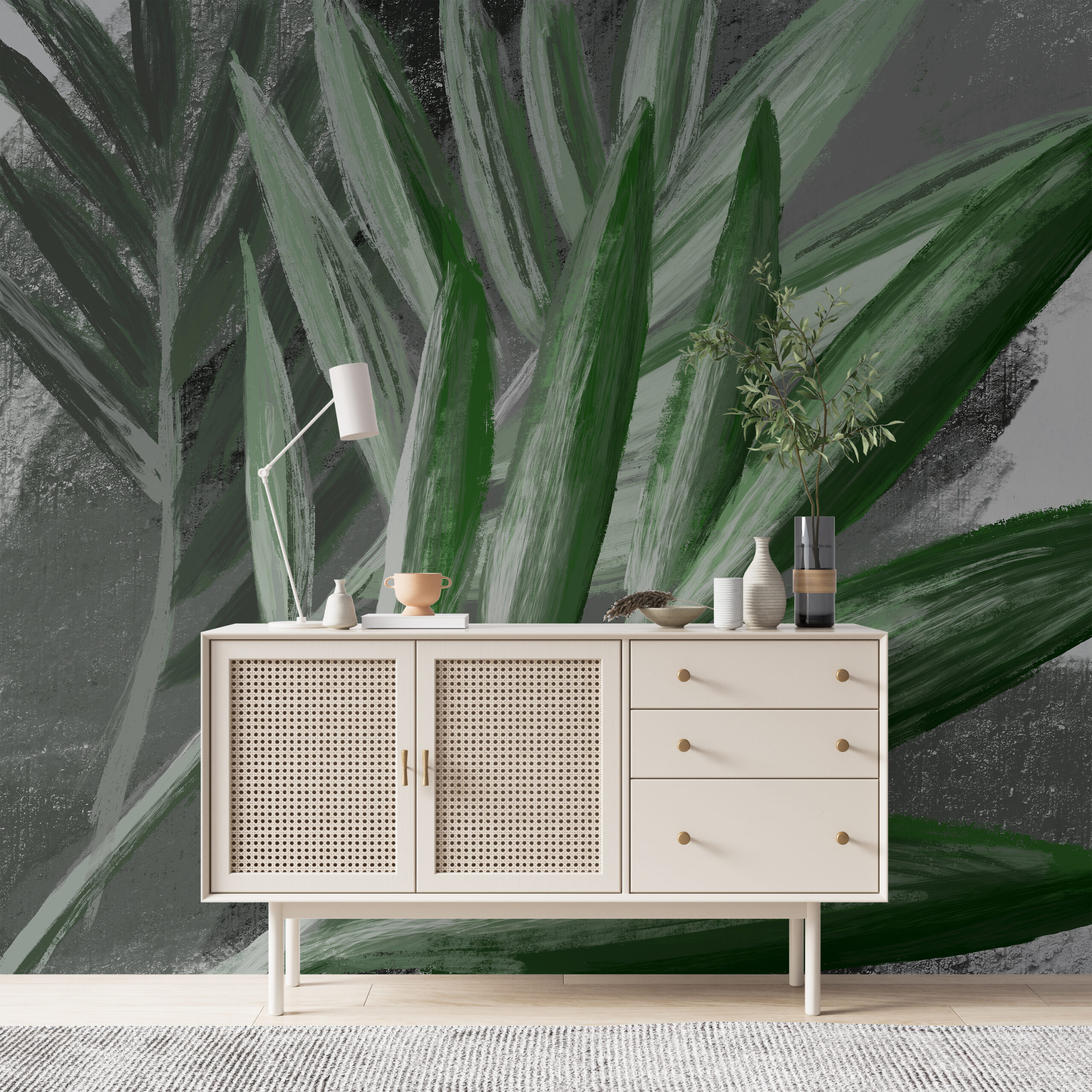 - Foto murale, GJETHE TROPIKALE, NATYRË, Ngjyrat, Nuancat e gjelbërim, Nuancat e gri, Për dhoma, PËR DHOMA GJUMI, PËR SALLONE, Stili, Tropikale