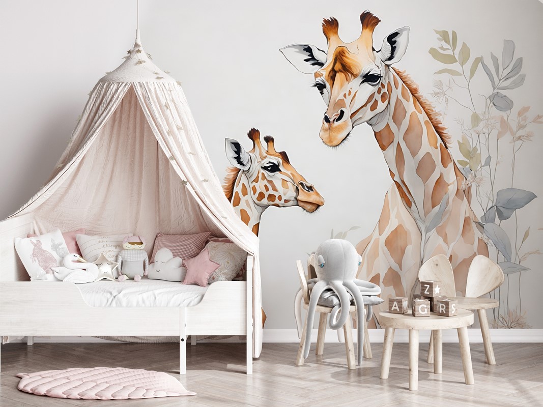 Sfondi me foto “Familja e Gjirafës” është një motiv i ngrohtë dhe simpatik, perfekt për dhomën e një fëmije. Ai përshkruan një skenë familjare me gjirafa në një mjedis të qetë dhe natyror. Stili i ilustrimit është i butë, pastel dhe i këndshëm për syrin, duke krijuar një hapësirë komode dhe harmonike për fëmijët. Modeli nxjerr gëzim dhe shpesh zgjidhet si element i dizajnit të brendshëm në stilet skandinave, boho-fëmijë ose idilike për fëmijë.