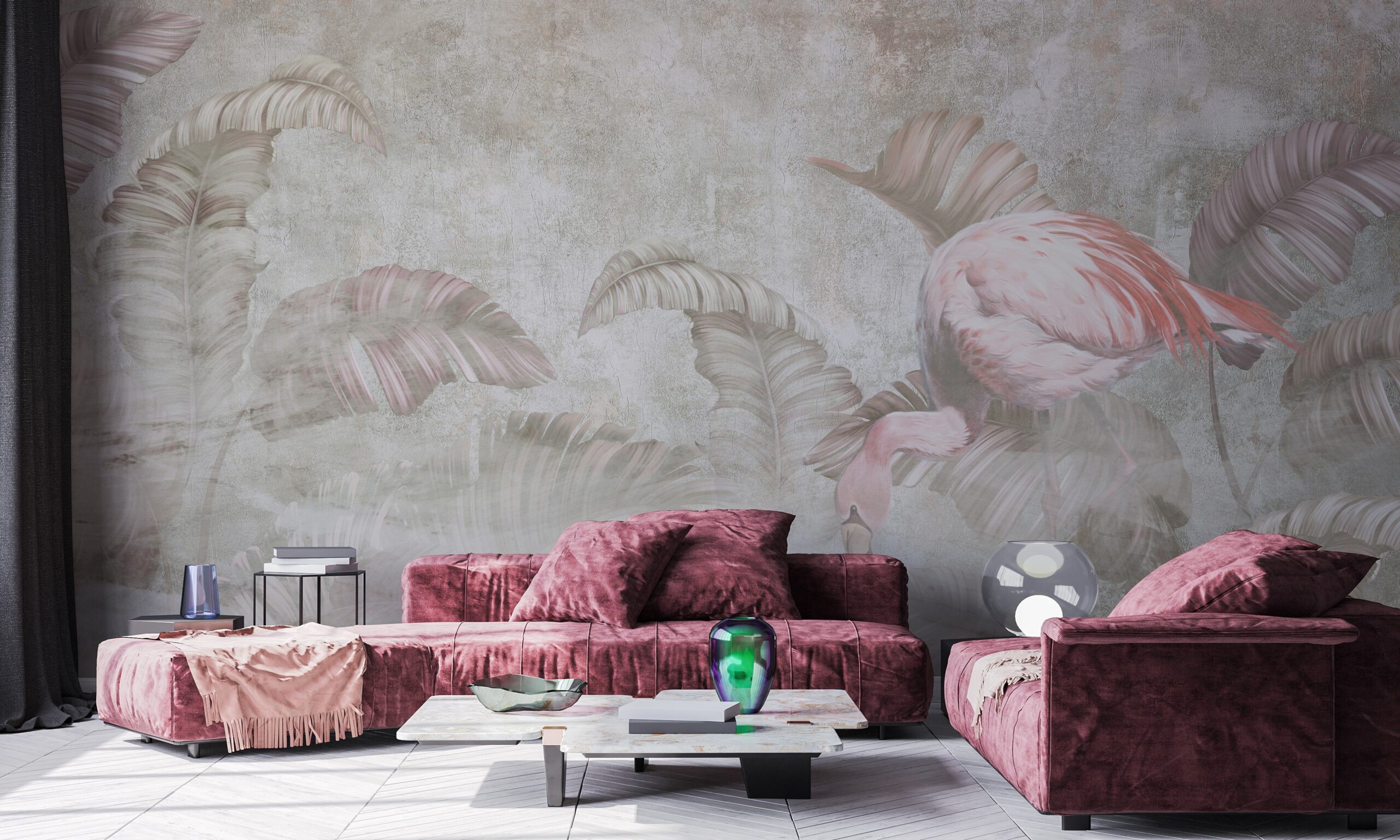 Sillni një atmosferë unike në shtëpinë tuaj me Letrën e Murit me Fotografi “Flamingo Misterioz”. Ky kompozim i projektuar me kujdes me një flamingo delikate dhe gjethe pastel krijon një atmosferë paqeje dhe misteri, duke i shtuar hapësirës lehtësi dhe bukuri unike. Ngjyrat delikate dhe të zbehta përzihen në mënyrë të përkryer me një shumëllojshmëri aranzhimesh, nga modernet tek klasiket.