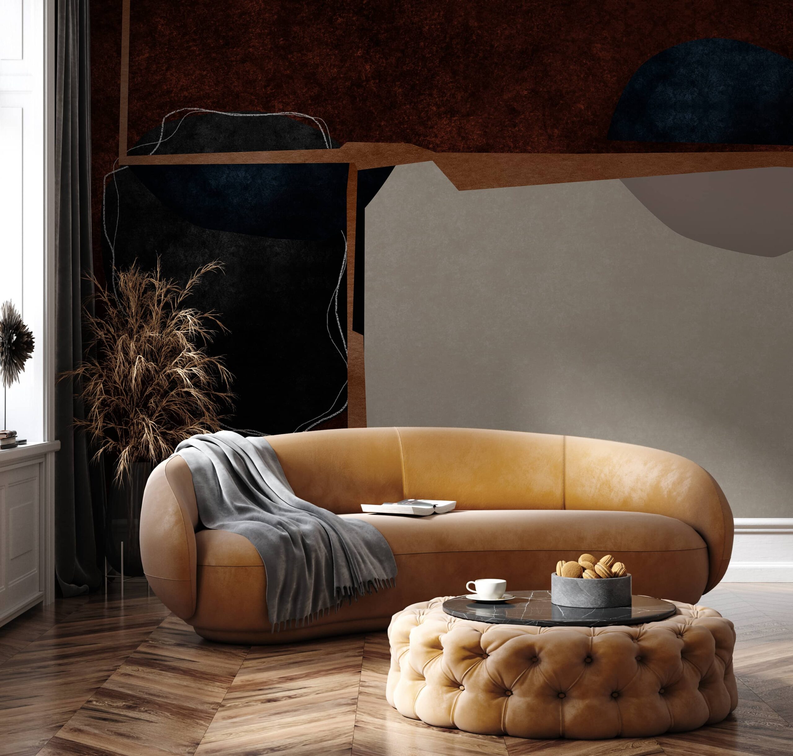 Konturet ekspresive, përmasat e balancuara dhe një lojë delikate midis dritës dhe hijes e bëjnë këtë model perfekt për aranzhime me një karakter të papërpunuar por të sofistikuar. I frymëzuar nga arkitektura moderne dhe një qasje moderniste ndaj formës, një letër muri me foto bëhet jo vetëm dekorim, por edhe një pjesë integrale e hapësirës – një që krijon një atmosferë dhe organizon vizualisht mjedisin përreth.