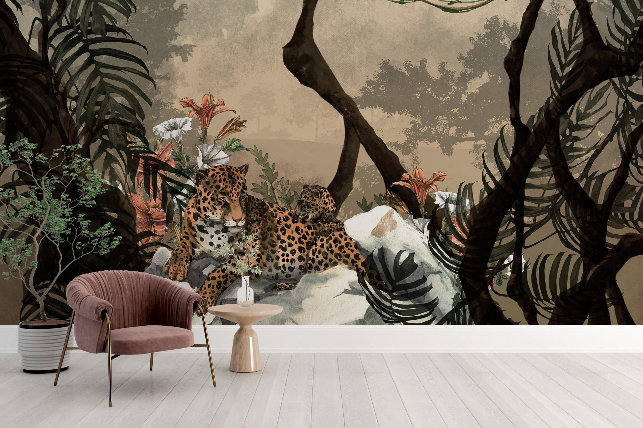 - Foto murale, GJETHE TROPIKALE, Ngjyrat, Nuancat e gri, Papafingo, Për dhoma, PËR PARADHOMA, PËR TUALETE, Stili
