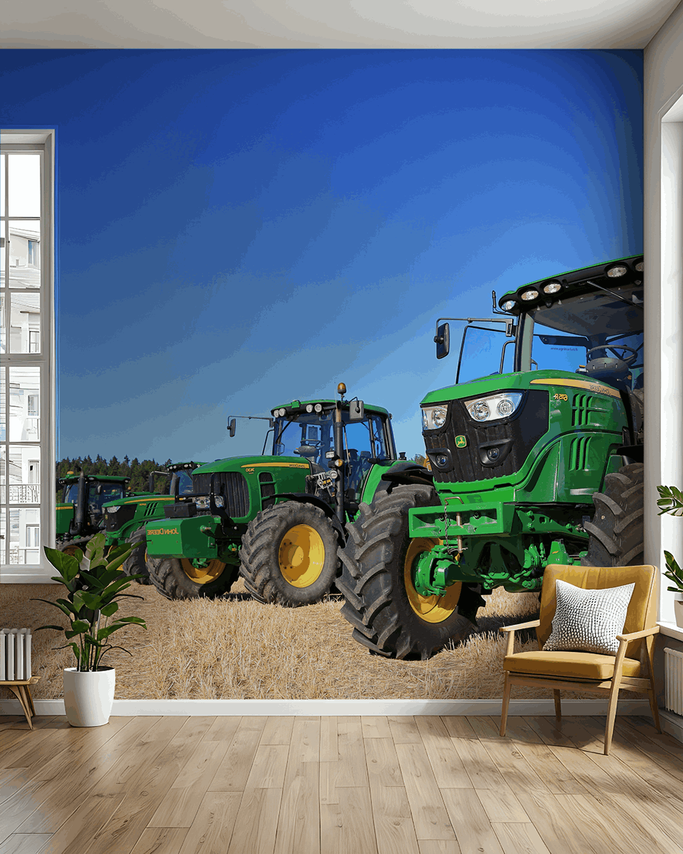 Sillni fuqinë e bujqësisë moderne në ambientet tuaja të brendshme me sfondin fotografik “Gjigandët e Gjelbër”. Kompozimi dinamik i një rreshti traktorësh modernë John Deere kundër një qielli blu kap madhështinë e makinerive dhe fuqinë e punës bujqësore. Kjo skenë realiste nxjerr paqe, harmoni me natyrën dhe teknologji të përparuar, duke sjellë një karakter unik në çdo hapësirë.