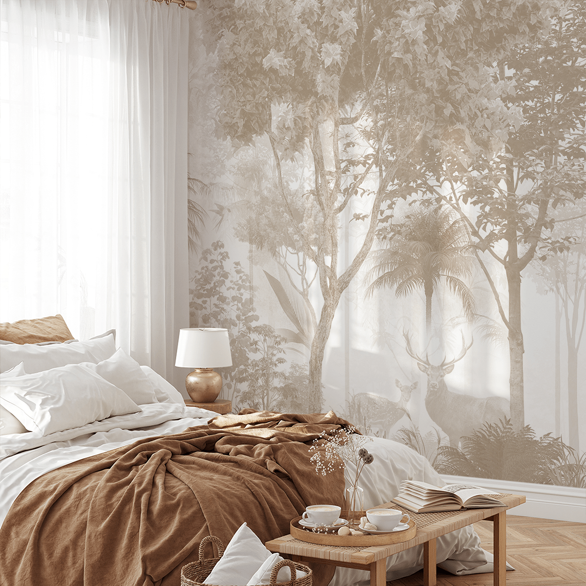 Prezantoni një atmosferë qetësie dhe kontemplimi në ambientet tuaja të brendshme me sfondin fotografik “Gri i Gjelbër”. Ky kompozim atmosferik kombinon nuanca delikate të të gjelbrës dhe grisë, duke krijuar një vizion të një pylli plot mister dhe paqe. Mjegulla delikate, drita e shpërndarë dhe silueta e një dreri i japin të gjithës një karakter piktorik dhe prezantojnë aurën e natyrës në dhomë sikur të shihet përmes një ëndrre.