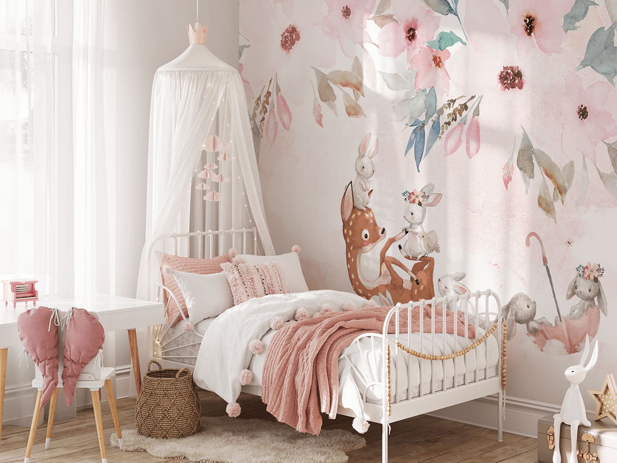 Kthejeni dhomën e fëmijës suaj në një vend magjik plot gëzim dhe ngrohtësi me sfondin fotografik “Këndi Rozë i Miqësisë”. Ky model simpatik pastel përshkruan një dre miqësor, lepuj të gëzuar dhe lule delikate, duke krijuar një atmosferë loje të shkujdesur dhe afërsie me natyrën. Ngjyrat delikate në nuanca rozë dhe krem sjellin paqe dhe harmoni, perfekte për relaksim dhe ëndërrim.