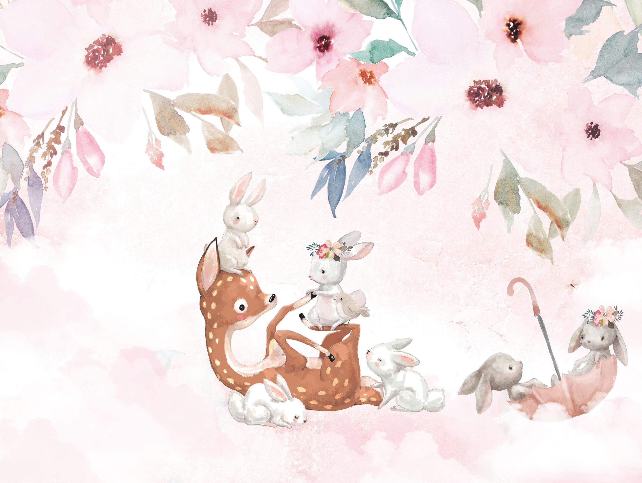 Sfond fotografik “Këndi Rozë i Miqësisë” – një botë përrallash, kafshë të adhurueshme dhe një vend pastel i ëndrrave të fëmijëve