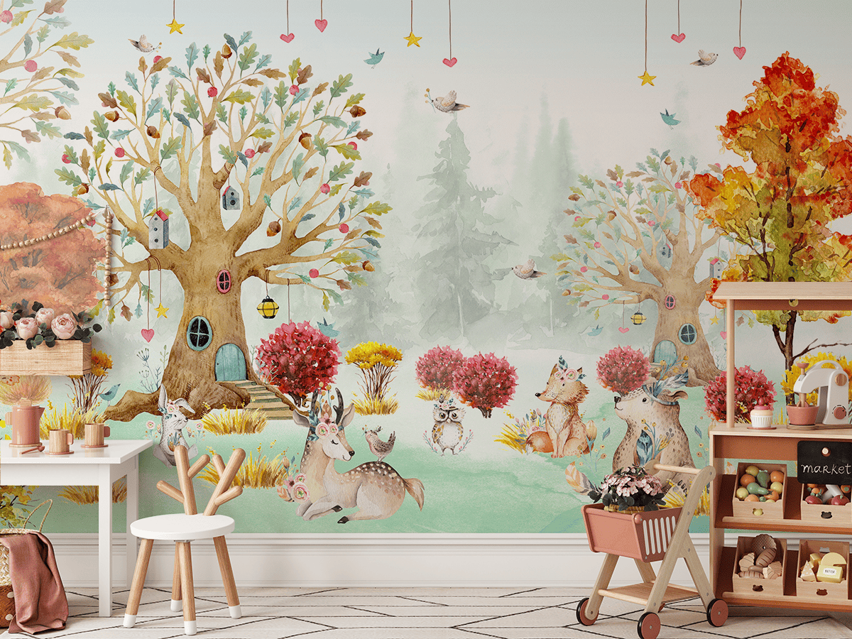 Shndërrojeni dhomën e fëmijës suaj në një vend të magjepsur me sfondin fotografik “Koshi i Përrallave të Kafshëve”. Ky dizajn i ngrohtë dhe simpatik i transporton më të vegjlit në një pyll shumëngjyrësh ku jetojnë kafshë miqësore, lulëzojnë pemë magjike dhe zemra e yje bien nga qielli. Estetika delikate me bojëra uji në ngjyra pastel krijon një hapësirë komode dhe të gëzueshme, të favorshme për lojë, të mësuar dhe relaksim.