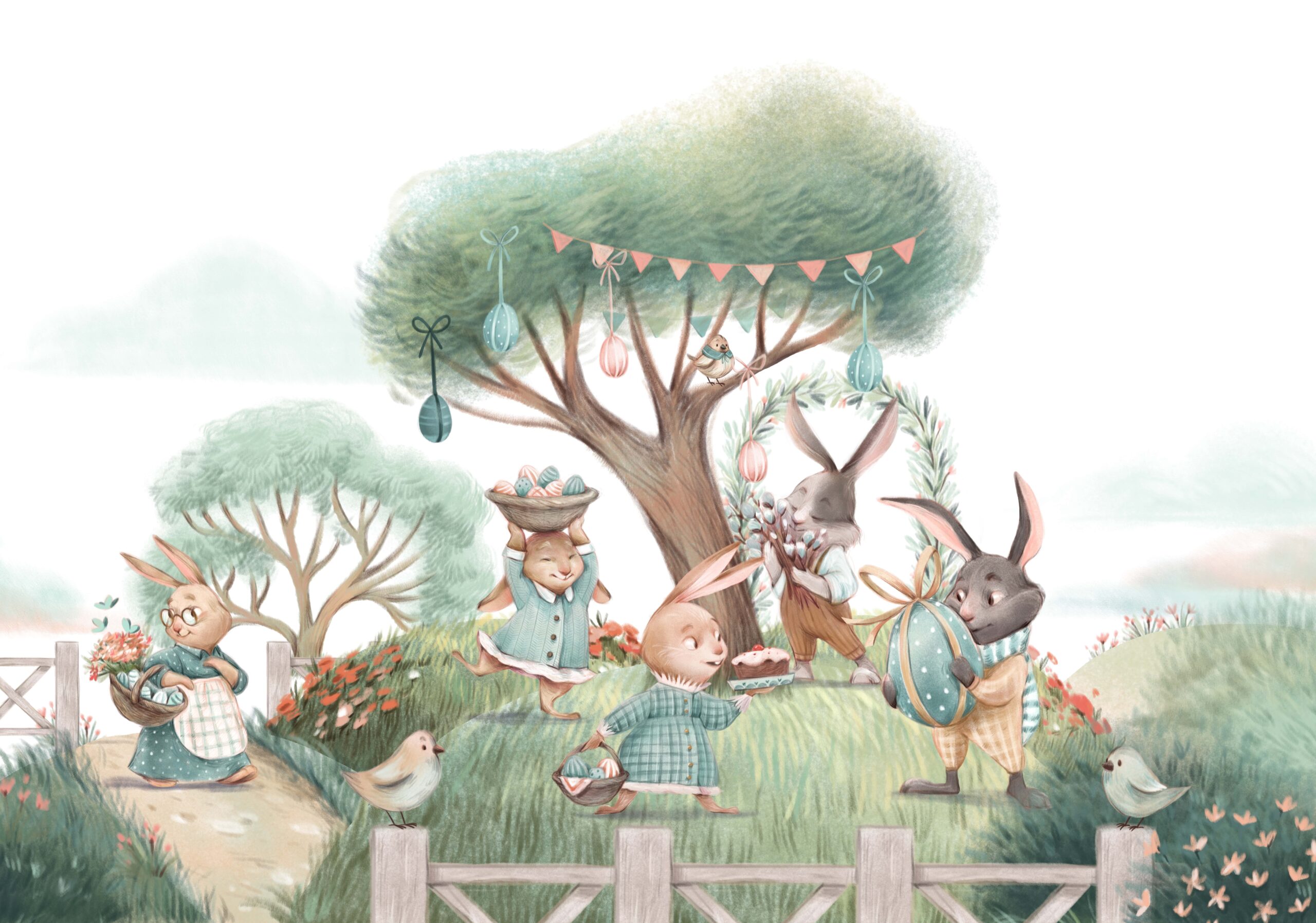 Lojë Muri me Foto “Lepujt e Pashkëve” – Pranverë e Gëzuar, Detaje Shumëngjyrëshe dhe një Dekorim i Sharmshëm për Dhomën e Fëmijës