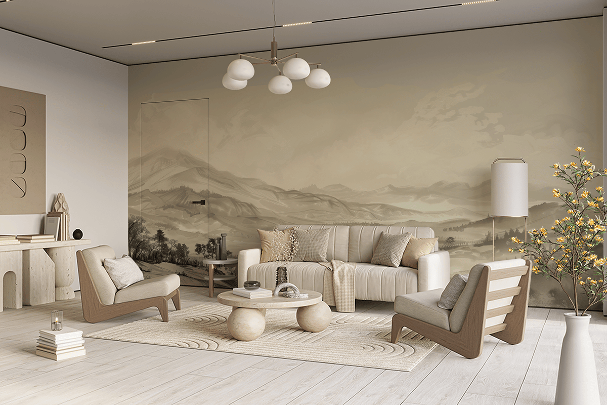 Futni një atmosferë unike në ambientin tuaj të brendshëm me sfondin fotografik “Lugina e Mjegullt e Paqes”. Ky peizazh delikat, monokromatik malesh dhe luginash i mbështjellë në mjegull krijon një aurë paqeje dhe qetësie, perfekt për çdo dhomë. Detajet delikate dhe ngjyrat e zbehta përzihen në mënyrë të përkryer me aranzhimet moderne dhe klasike.