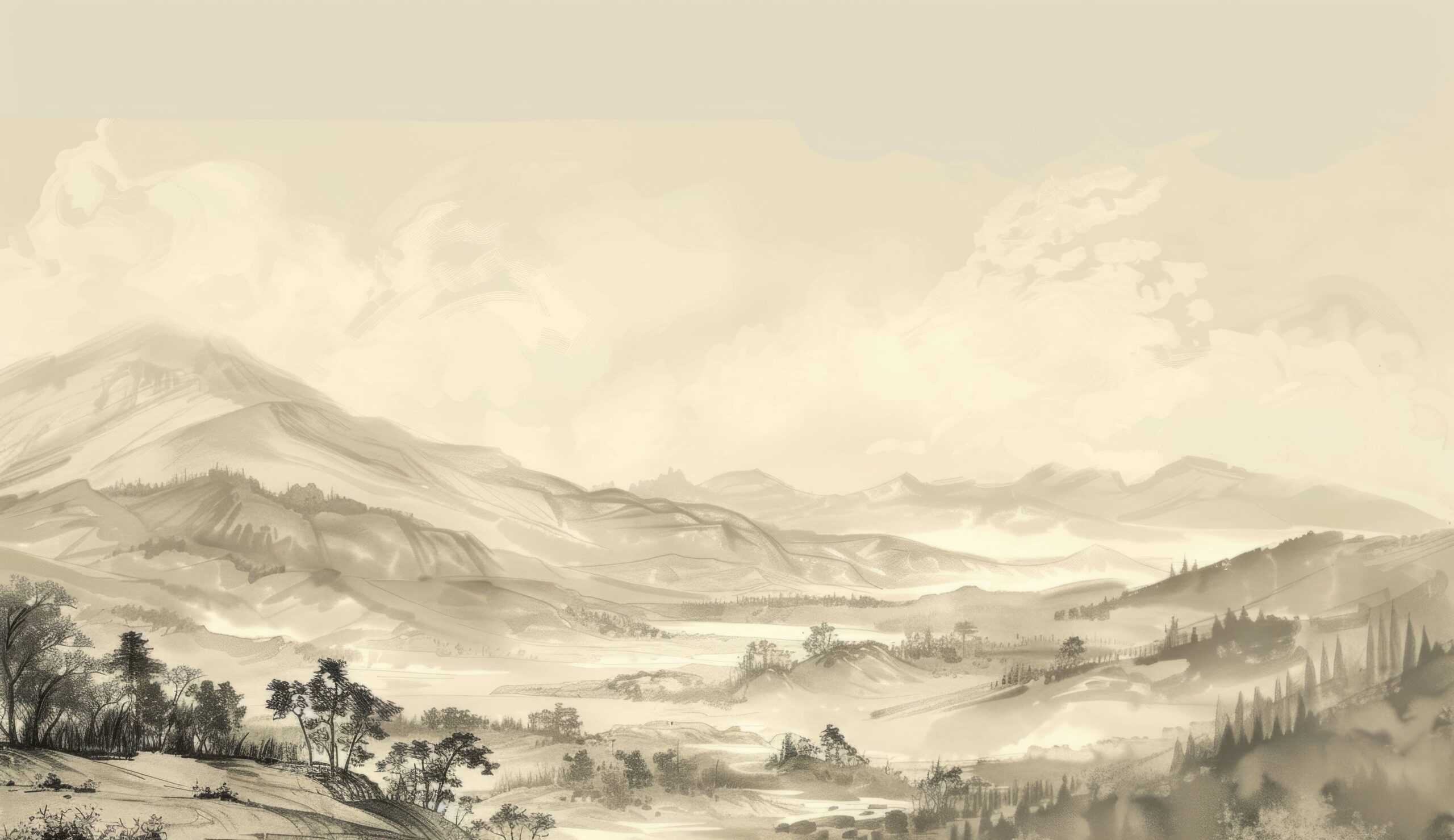 Sfond fotografik “Lugina e Mjegullt e Paqes” – një hapësirë mistike, një atmosferë delikate dhe harmonia e përjetshme e natyrës