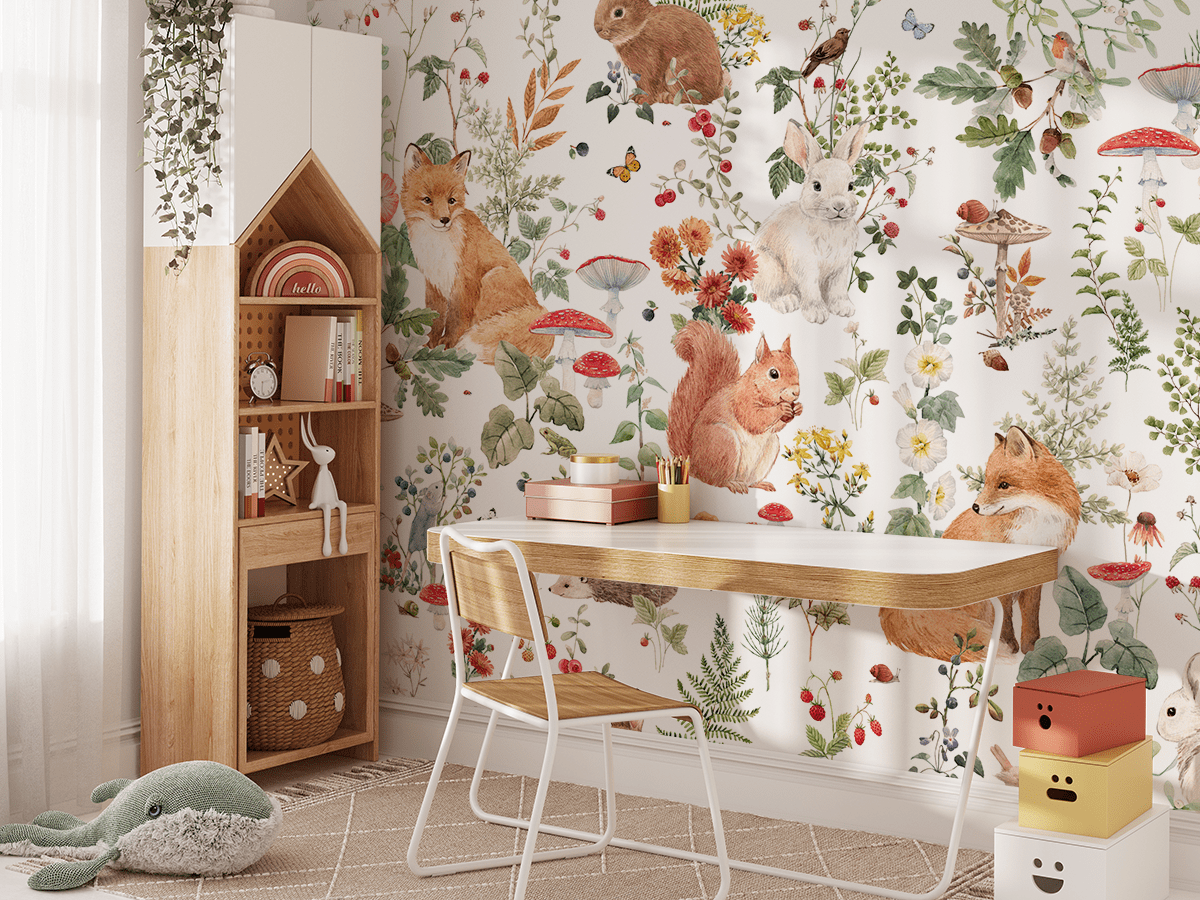 Detajet delikate dhe ngjyrat e gëzueshme e bëjnë këtë sfond fotografik një përshtatje të përsosur për dhomën e një fëmije, duke krijuar një hapësirë të ngrohtë, komode dhe frymëzuese për të luajtur, mësuar dhe relaksuar. Është një mënyrë e shkëlqyer për të sjellë sharmin natyror të pyllit dhe natyrës në ambientet tuaja të brendshme.