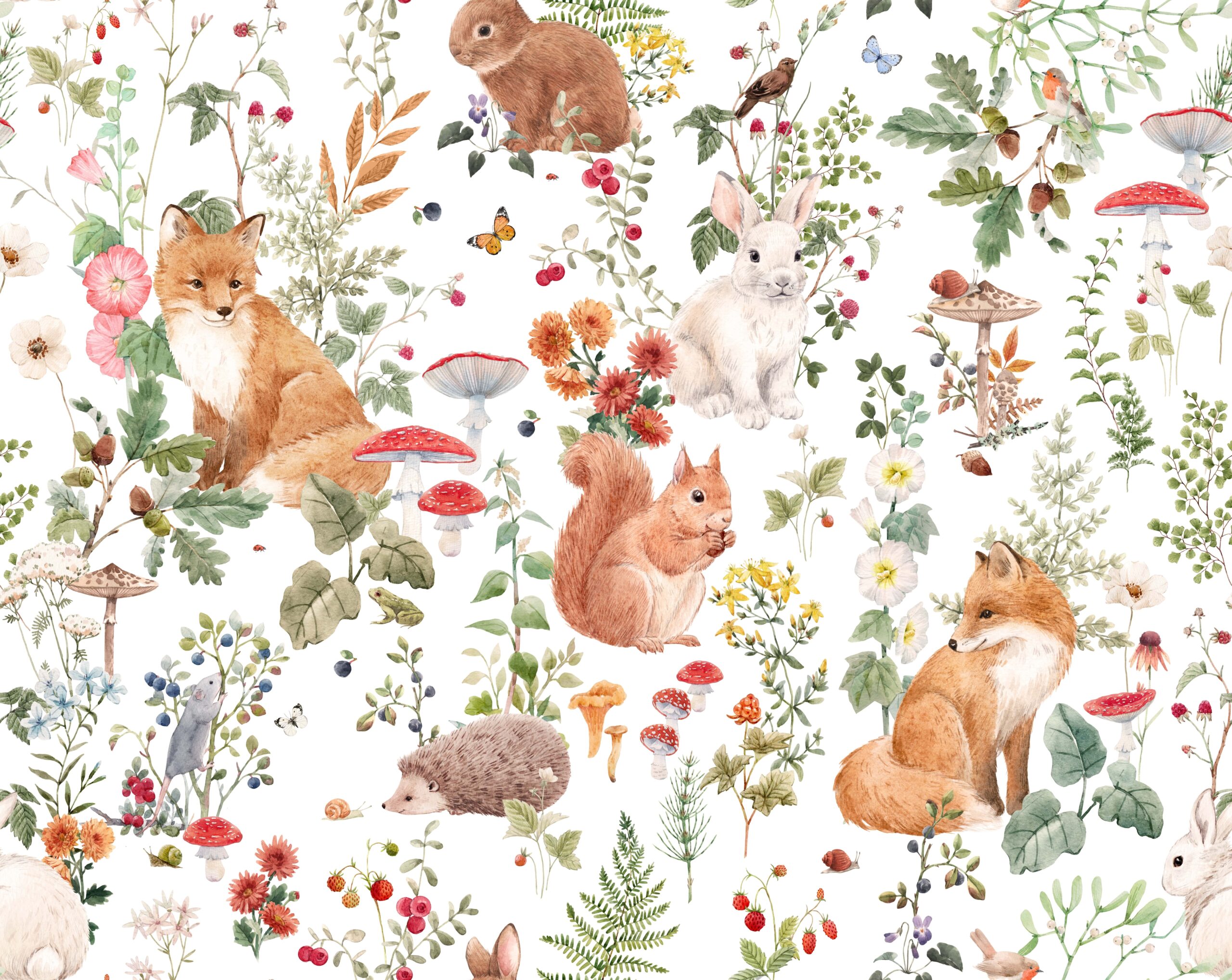 Shndërrojeni dhomën e fëmijës suaj në një vend të magjepsur me sfondin fotografik “Midis Kërpudhave dhe Luleve”. Ky model simpatik është plot me kafshë të gëzuara, lule shumëngjyrëshe dhe kërpudha pylli që do të zgjojnë imagjinatën e fëmijëve dhe do t’i inkurajojnë ata të zbulojnë botën e natyrës.