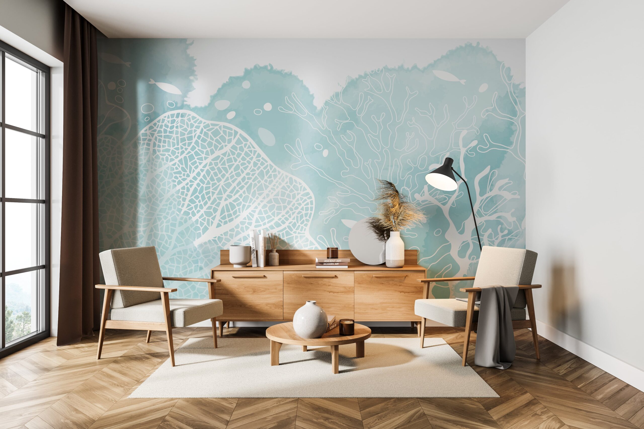Kjo letër muri me foto nuk është thjesht një dekorim – është një element unik që i sjell lehtësi, një aurë detare dhe një stil unik e të qetë ambientit të brendshëm.