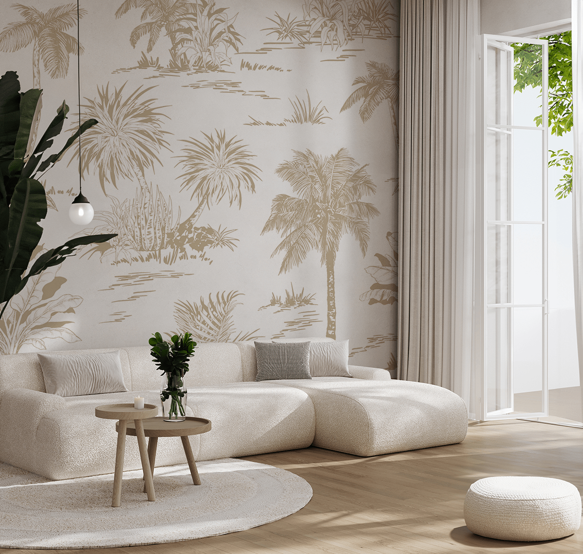Transportoni veten në një oaz paqeje me letër sfondi me foto “Palmat e Shkretëtirës”. Ky model delikat, monokromatik me palma dhe bimësi në nuanca delikate bezhë ngjall atmosferën e peizazheve të shkretëtirës, duke i sjellë hapësirës një aurë unike relaksi dhe ngrohtësie. Detajet minimaliste dhe ngjyrat klasike përzihen në mënyrë të përkryer si me dizajnet moderne ashtu edhe me ato klasike të brendshme.