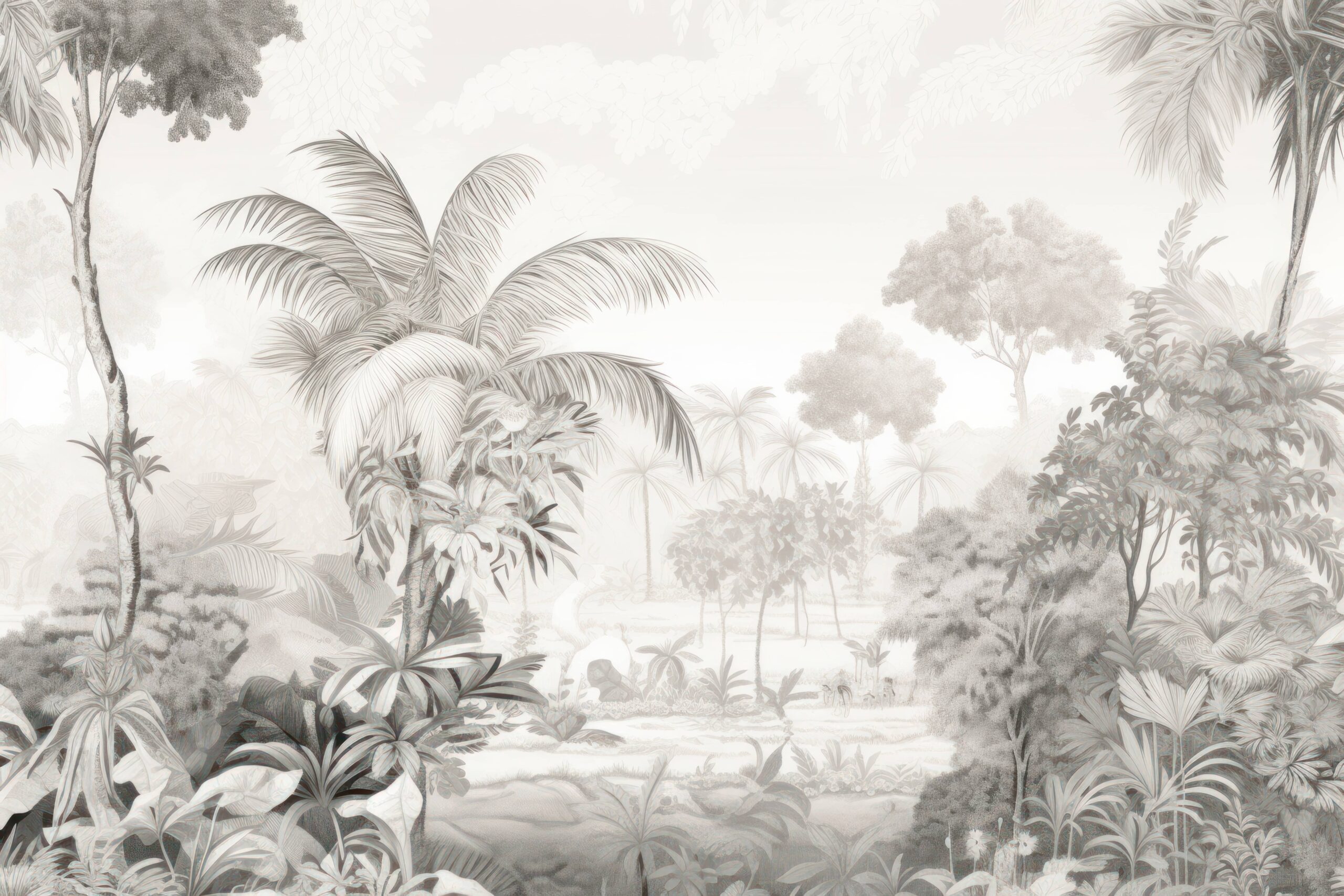 Sillni një atmosferë unike në shtëpinë tuaj me muralin “Parajsa Tropikale e Mjegullt”. Ky motiv delikat dhe monokromatik i xhunglës tropikale mbështjell hapësirën në një mjegull të butë dhe nxjerr qetësinë e një pylli ekzotik shiu. Detajet e sakta të gjetheve dhe pemëve krijojnë një atmosferë misteri dhe harmonie natyrore që përzihet në mënyrë të përkryer me aranzhimet moderne dhe klasike.