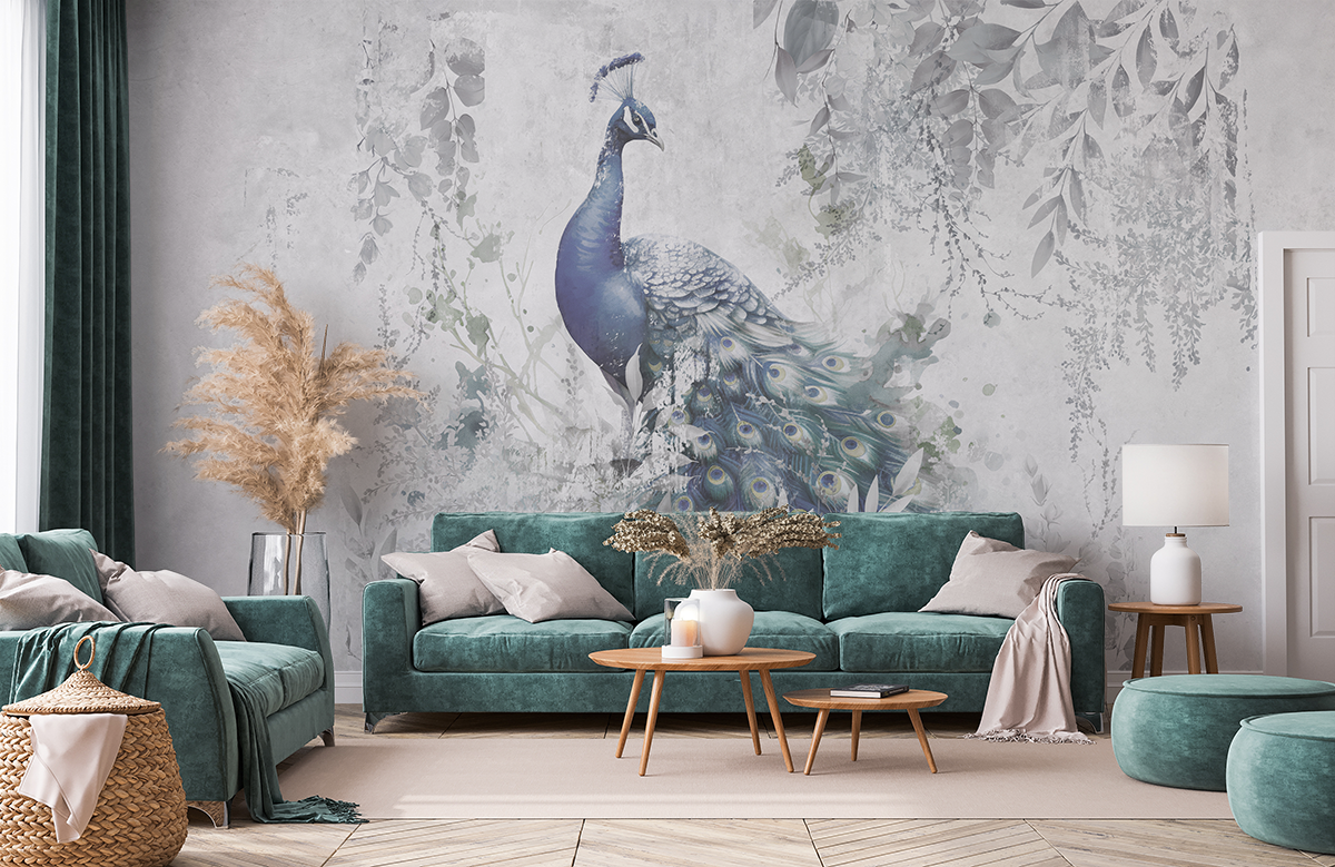 Hapni derën drejt botës së ëndrrave delikate me sfondin fotografik “Peacock Dream Landscape”. Ky motiv unik, që përshkruan një pallua madhështor të zhytur në një peizazh botanik me mjegull, magjeps me përbërjen e tij sensuale të ngjyrave dhe detajeve. Nuancat e zbutura të blusë, argjendit dhe të bardhës krijojnë një tërësi harmonike në të cilën delikatesa e natyrës takohet me elegancën e formës.