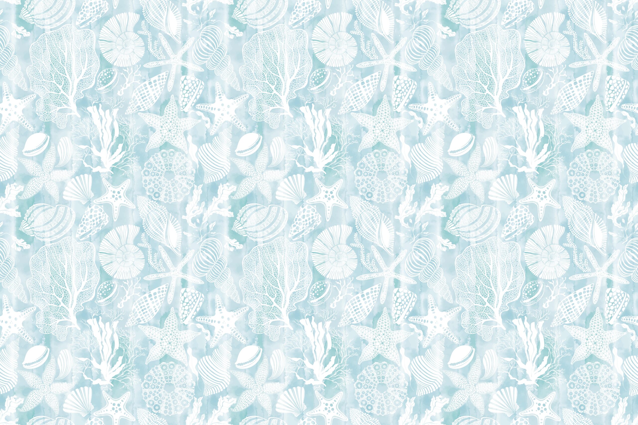Futni një atmosferë unike në ambientet tuaja të brendshme me Letrën e Murit për Fotografi “Sea Fabric”. Modeli delikat i guaskave, koraleve dhe yjeve të detit ngjall një ndjesi relaksi dhe freskie. Thekset delikate të bardha në një sfond blu të butë krijojnë një atmosferë sikur të ishit nën ujë, të rrethuar nga qetësia e detit.