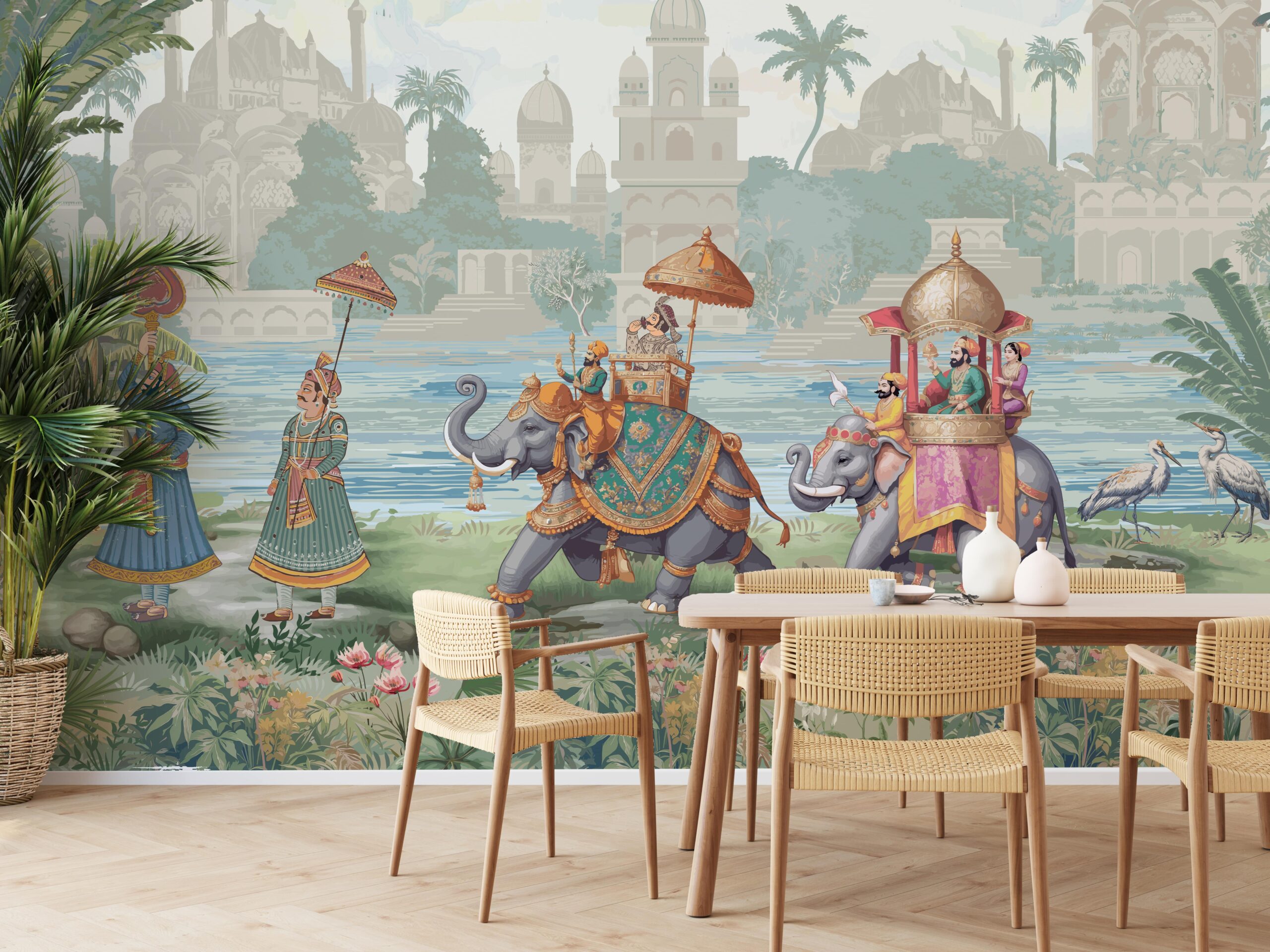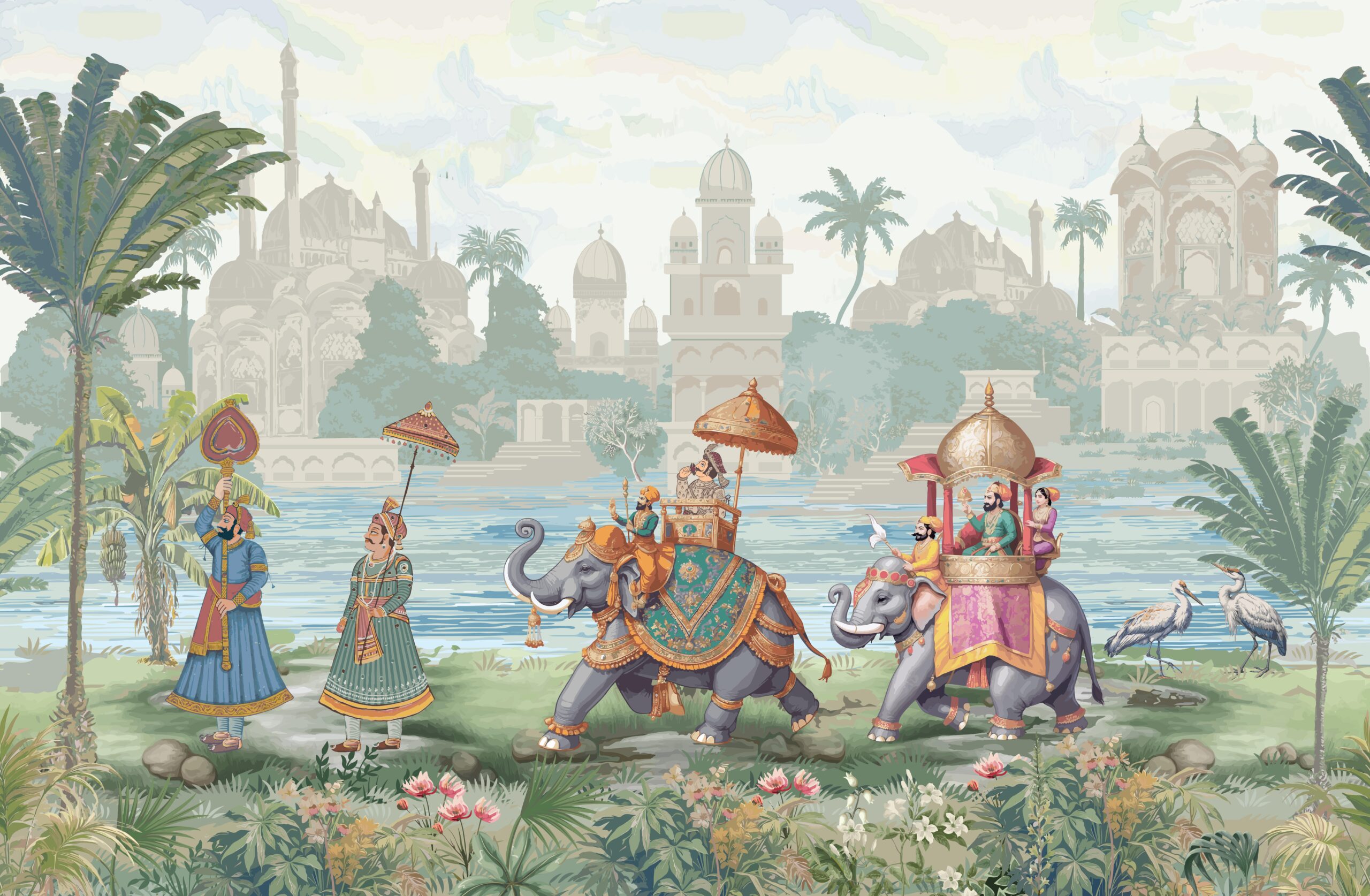Sillni atmosferën e perandorive të lashta në brendësinë tuaj me muralin “Perandoria e Heshtur”. Ky motiv atmosferik dhe i pasur me detaje përshkruan një procesion mbretëror në një mjedis të frymëzuar nga arkitektura dhe kultura e Lindjes së Largët. Paleta e qetë e ngjyrave, kompozimi elegant dhe simbolika e pranishme në çdo element krijojnë një atmosferë të jashtëzakonshme heshtjeje, dinjiteti dhe force të ekuilibruar.