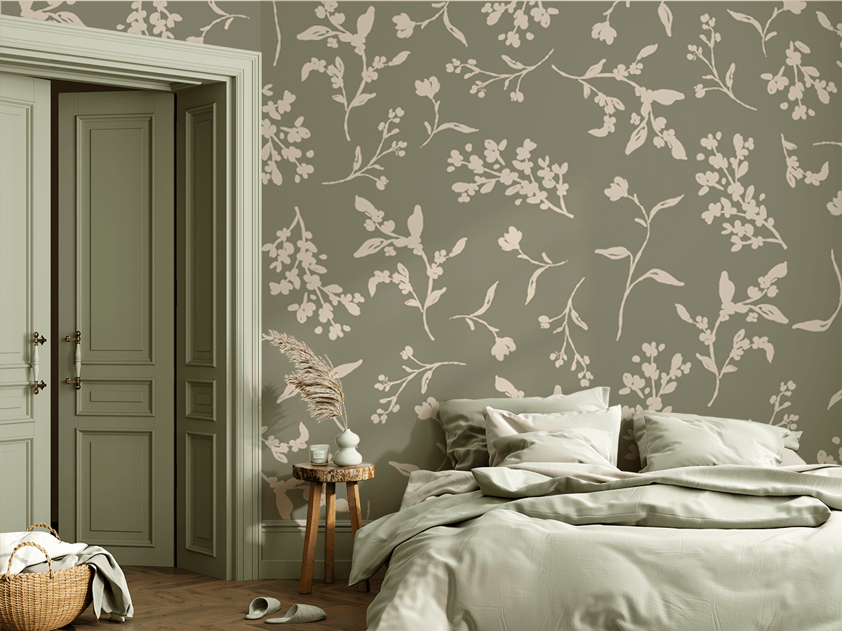 Lëmijë sfondi fotografik “Pëshpëritja e degëve” – delikatesa e natyrës, harmonia delikate dhe eleganca e qetë në ambientet tuaja të brendshme