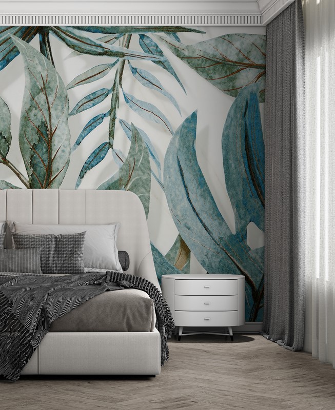 - 3D, Boho, Foto murale, GJETHE TROPIKALE, Ngjyrat, Nuancat e gjelbërim, Nuancat e gri, Për dhoma, PËR DHOMA GJUMI, PËR KUZHINA, PËR SALLONE, Stili, Tropikale