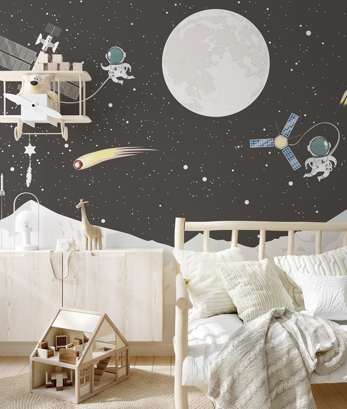 Motivi i hapësirës është një zgjedhje perfekte për dhoma për djem dhe vajza – motivet e yjeve, planetët dhe një qiell me yje krijojnë një hapësirë frymëzuese, plot energji dhe gëzim, e cila e motivon fëmijën të ëndërrojë udhëtime ndërplanetare.