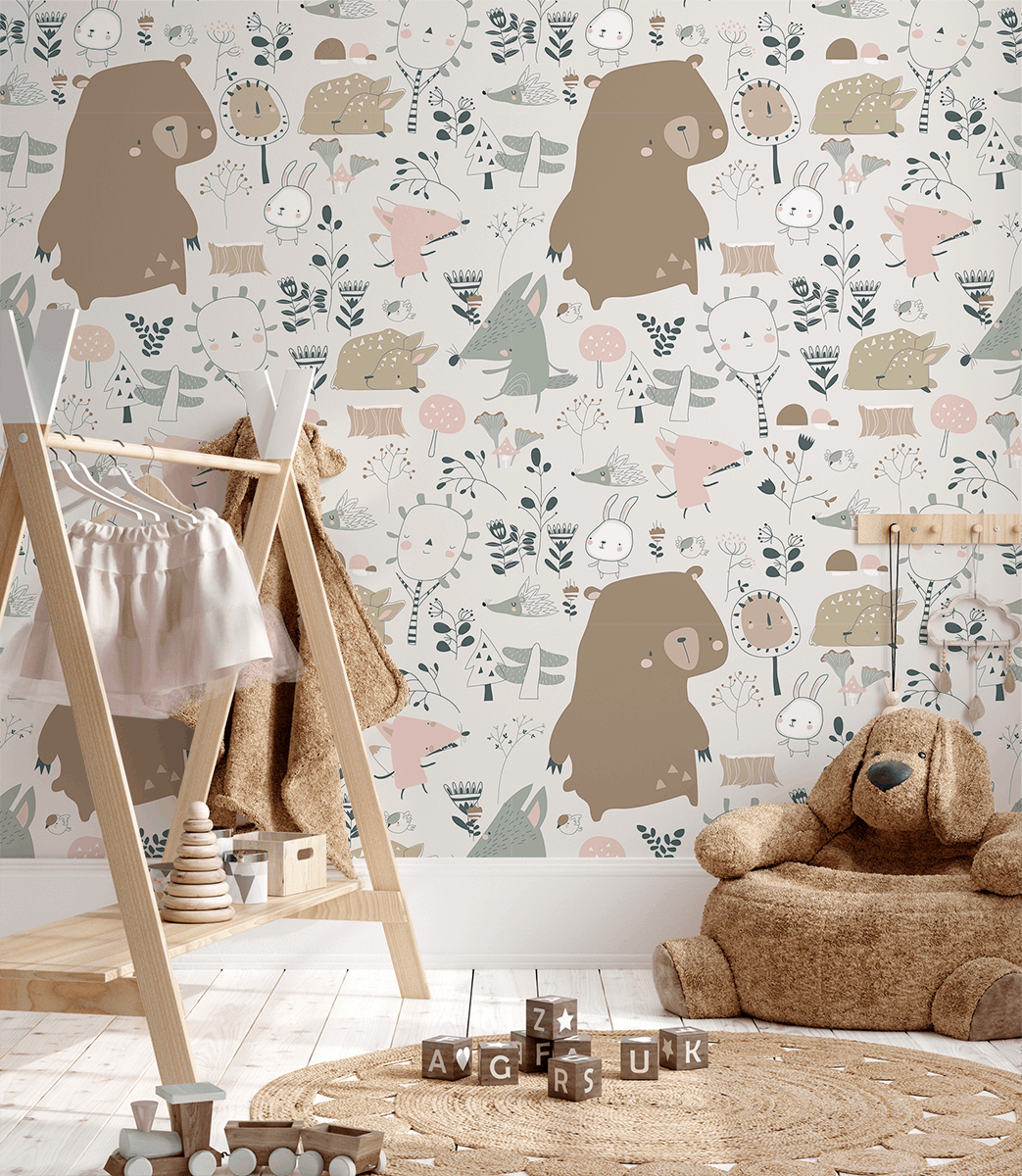 Prezantojeni një atmosferë unike në dhomën e fëmijës suaj me muralin “Forest Dreamland”. Ngjyrat delikate pastel dhe ilustrimet argëtuese të kafshëve dhe bimëve të pyllit krijojnë një atmosferë komode që nxit gjumin e qetë dhe lojën e gëzueshme. Konturet e buta dhe karakteret miqësore përshtaten në mënyrë të përkryer në aranzhime plot ngrohtësi dhe imagjinatë fëmijërore.