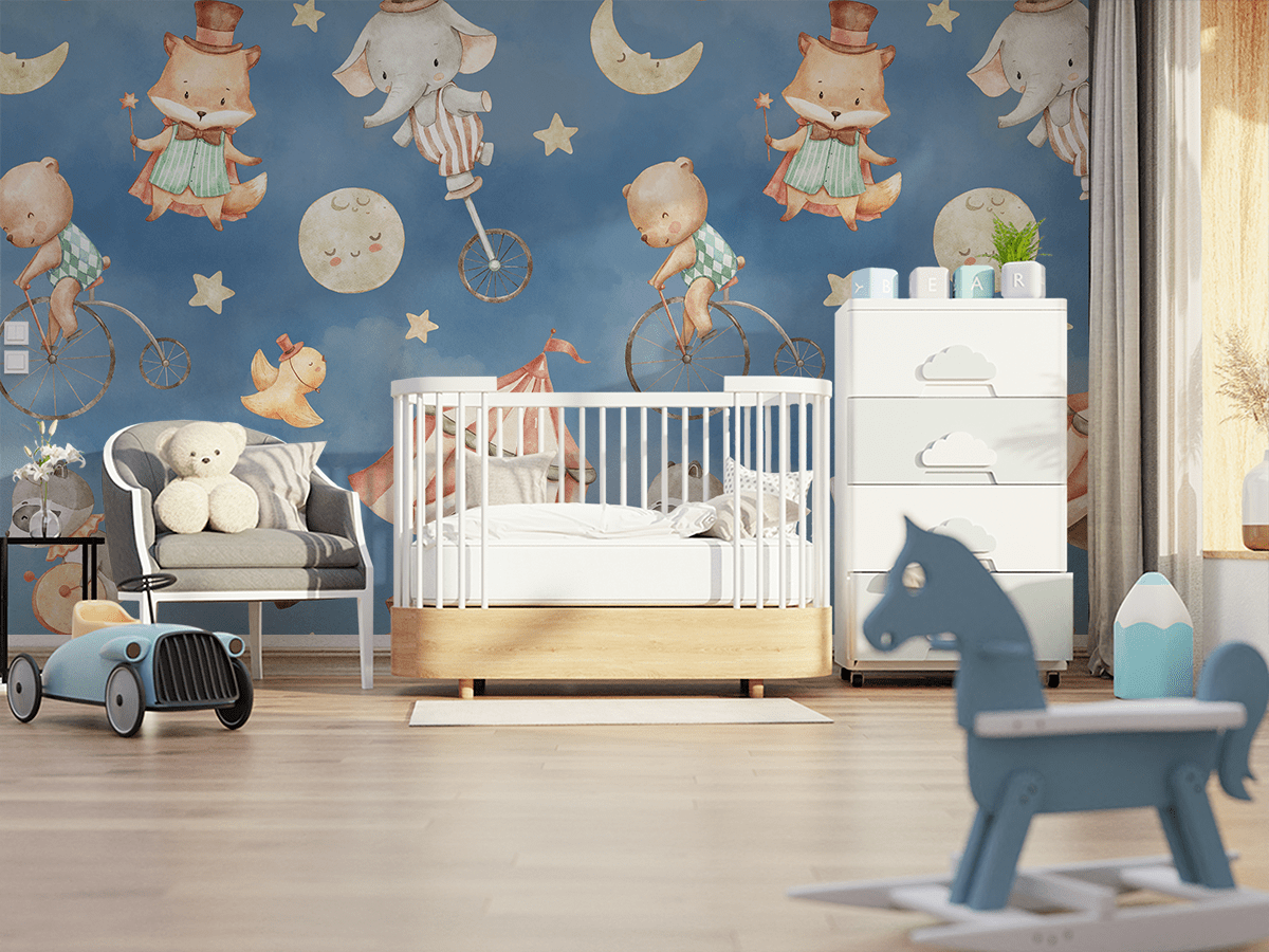 Krijoni një atmosferë unike në dhomën e fëmijës suaj me sfondin fotografik “Sky Fun”. Ky model simpatik me kafshë qesharake cirku kundër qiellit të natës e transporton të voglin tuaj në një botë fantazie dhe argëtimi të shkujdesur. Ngjyrat delikate dhe personazhet miqësorë krijojnë një atmosferë të ngrohtë dhe të gëzueshme, perfekte për dhomën e një fëmije.
