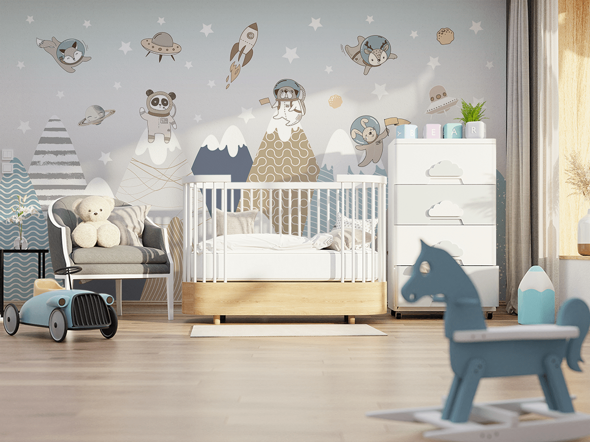 Krijoni një atmosferë unike në dhomën e fëmijës suaj me muralin “Shtigje Galaktike”. Ky ilustrim shumëngjyrësh dhe imagjinativ përshkruan kafshë me kostume hapësinore që zbulojnë sekretet e yjeve dhe planetëve të largët. Ngjyrat e ndezura dhe personazhet miqësorë e bëjnë hapësirën të gëzueshme, frymëzuese dhe të favorshme për të luajtur.