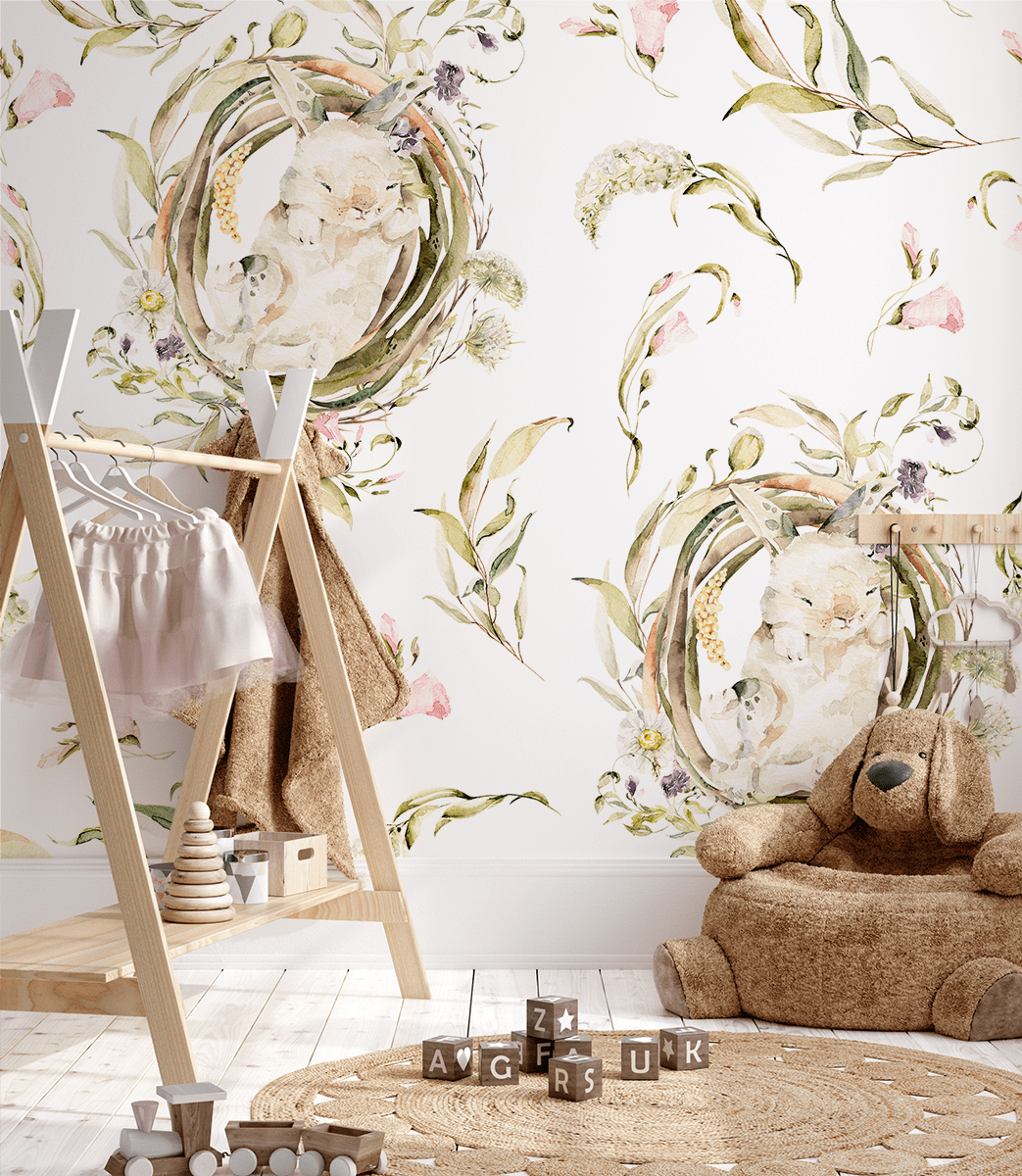 Sillni një atmosferë magjike në dhomën e fëmijës suaj me letër muri “Flower Haven”. Ky model simpatik me një lepur të butë që fle, i rrethuar nga lule dhe gjethe delikate, krijon një atmosferë të ngrohtë dhe komode, plot siguri dhe gëzim. Ngjyrat pastel dhe motivet përrallore përputhen në mënyrë të përkryer me ambientet e brendshme të fëmijëve, duke sjellë paqe dhe harmoni.