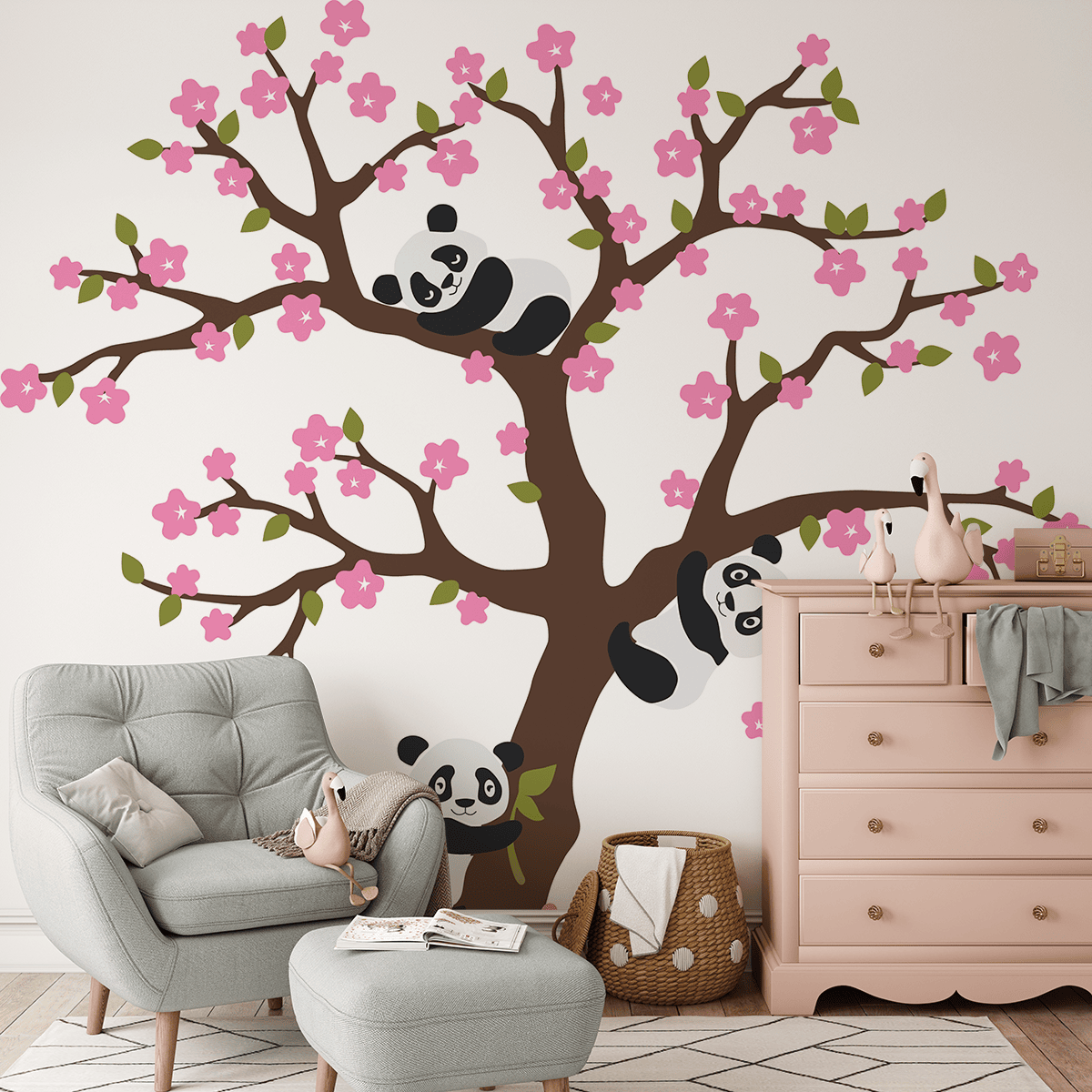 Një letër-muri me foto nuk është vetëm një dekorim – është një ftesë për botën e fantazisë së fëmijëve, ku çdo degë dhe çdo panda tregon historinë e saj të gëzueshme.