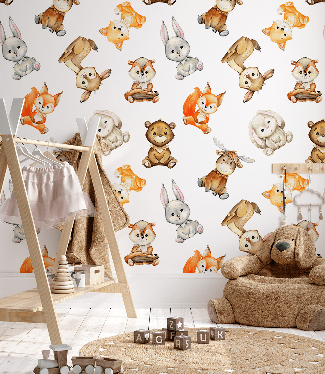 Sfondi “Toka e të Vogëlve” – një botë simpatike me kafshë miqësore pylli, gëzimi dhe ngrohtësia e dhomës së një fëmije