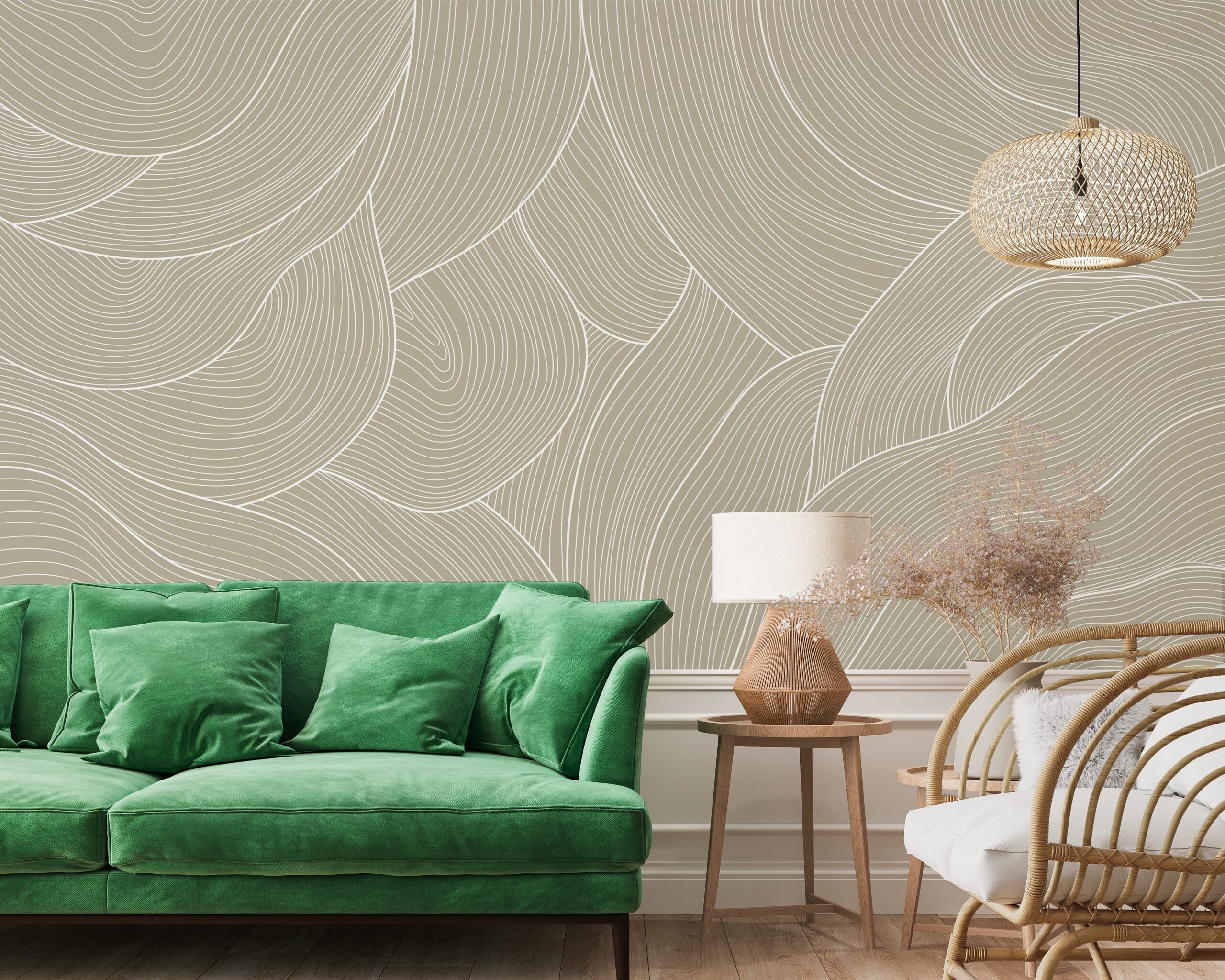 Prezantojeni hapësirën tuaj me letrën e murit për foto “Valët e rërës”. I frymëzuar nga linjat natyrale të dunave, valëve dhe fibrave të drurit, modeli krijon një efekt dekorativ delikat, por ekspresiv, që qetëson shqisat dhe nxit qetësinë. Sfondi delikat, ngjyrë krem-bezhë dhe linjat e bardha të rregulluara në mënyrë harmonike krijojnë një ndjesi lehtësie dhe thellësie, duke u përshtatur në mënyrë të përkryer në ambientet e brendshme moderne dhe skandinave.