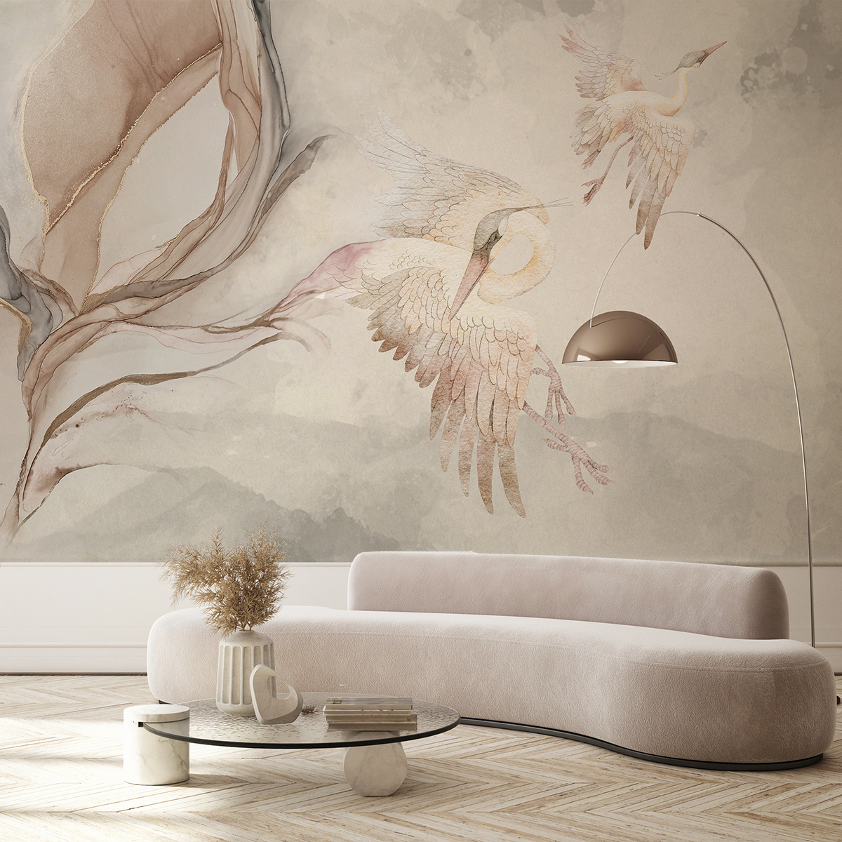 Mural “Zogjtë Romantikë” – Lehtësi e Hollë, Elegancë Pikture dhe Sharmi Qetësues i Natyrës. Sillni një atmosferë paqeje dhe bukurie poetike në ambientet tuaja të brendshme me muralin “Zogjtë Romantikë”. Ky kompozim delikat me bojëra uji i zogjve fluturues nxjerr lehtësi dhe harmoni. Nuancat delikate të ngjyrës bezhë, rozë dhe gri krijojnë një sfond të qetë, pothuajse eterik, që plotëson në mënyrë të përkryer linjat elegante dhe organike. Është zgjedhja perfekte për ata që vlerësojnë artin e frymëzuar nga natyra, estetikën e rafinuar dhe hirin minimalist. “Zogjtë Romantikë” do të përmirësojnë bukur karakterin e një dhome gjumi, dhome ndenjeje, dhome relaksi ose hapësire tregtare, duke i mbushur ato me një ndjenjë lirie dhe butësie. Ky mural është më shumë sesa thjesht dekorim – është një histori vizuale e paqes, lirisë dhe bukurisë së fshehur në thjeshtësi. Ai sjell stil artistik, një atmosferë romantike dhe sofistikim të përjetshëm në çdo ambient të brendshëm.